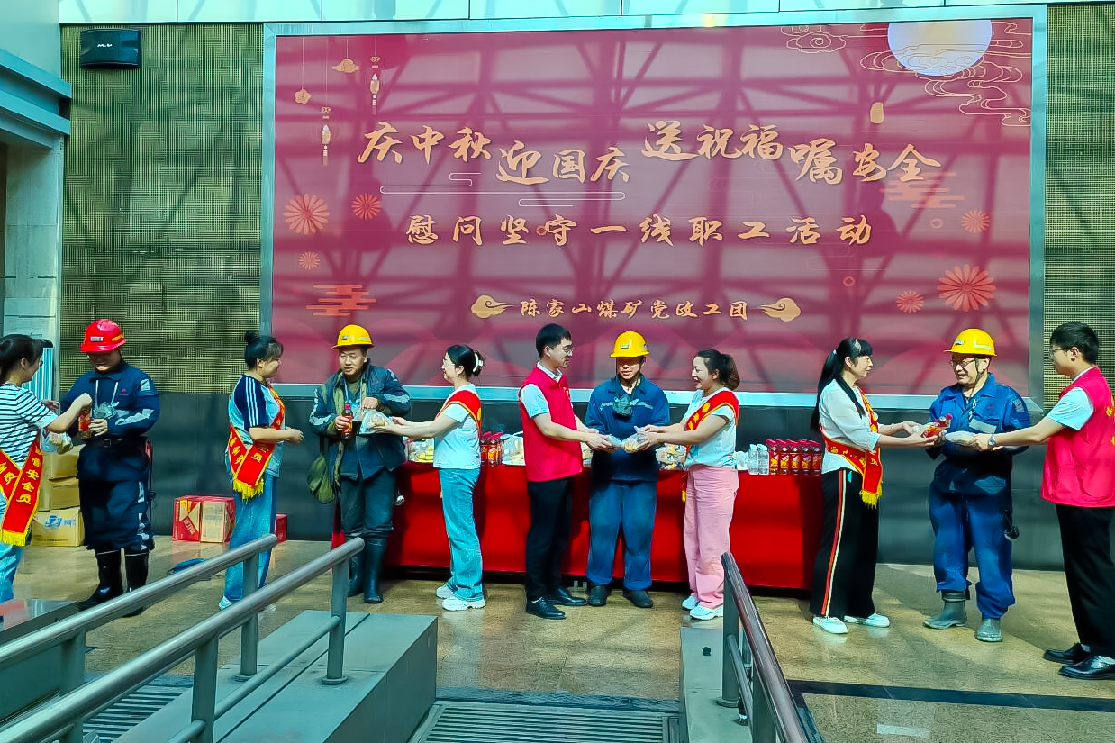 陳家山礦“中秋慰問傳真情 用情囑安暖人心”井口慰問活動(dòng)中,將月餅、飲料等送到節(jié)日?qǐng)?jiān)守崗位的職工手上,為他們送上誠摯的節(jié)日祝福,暖心的舉措有激發(fā)了干部職工干事創(chuàng)業(yè)的向心力。(崇娜)