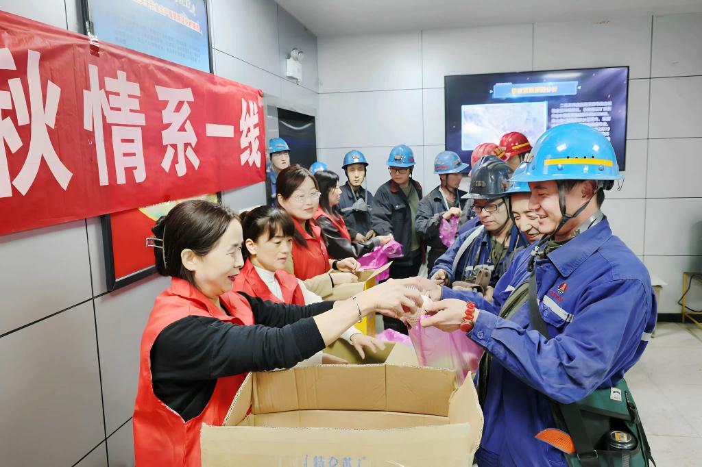 下石節(jié)礦積極開展“月圓中秋 情暖一線”活動(dòng),女工家屬將一個(gè)個(gè)象征團(tuán)圓平安的月餅、蘋果、蜜茶等慰問品送到節(jié)日守崗的干部職工手中,并祝福礦工兄弟中秋快樂、闔家幸福,叮囑大家安安全全工作、平平安安回家。(王艷)