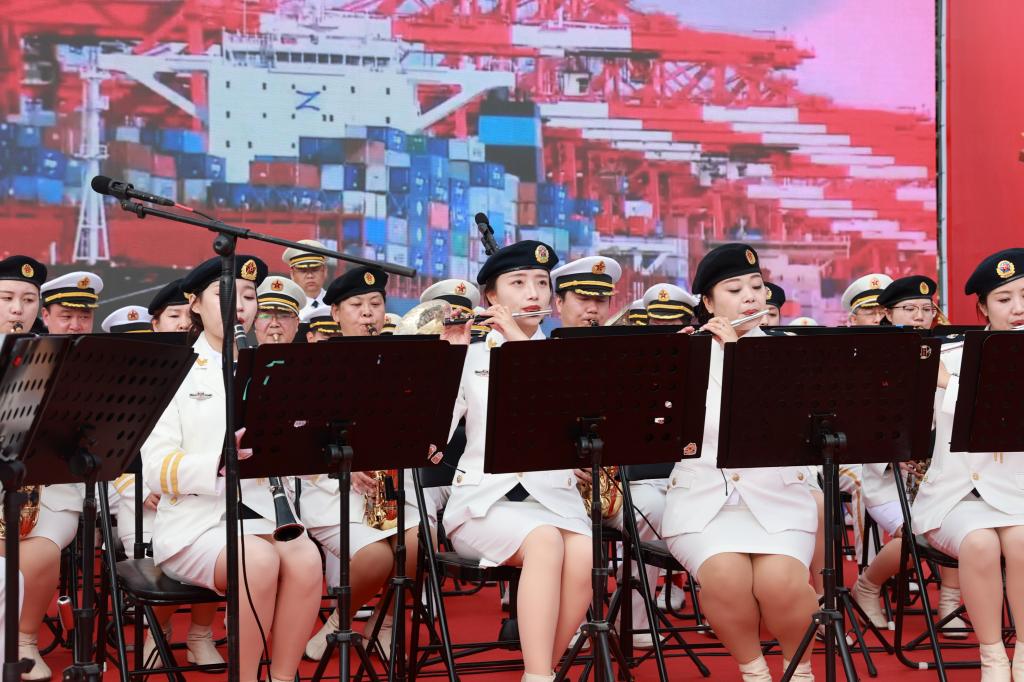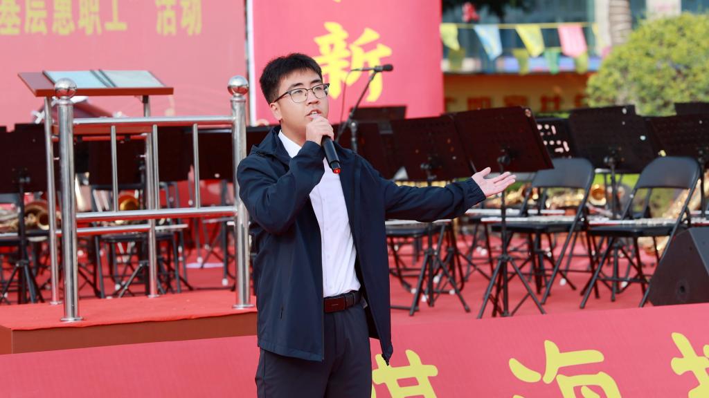 演出分上半場、下半場進行。上半場演出在交響管樂《紅旗頌》的激昂旋律中拉開序幕,氣勢磅礴的樂章、震撼人心的旋律,將家國情懷、奮進力量傳遞到現(xiàn)場的每一名職工的心中。