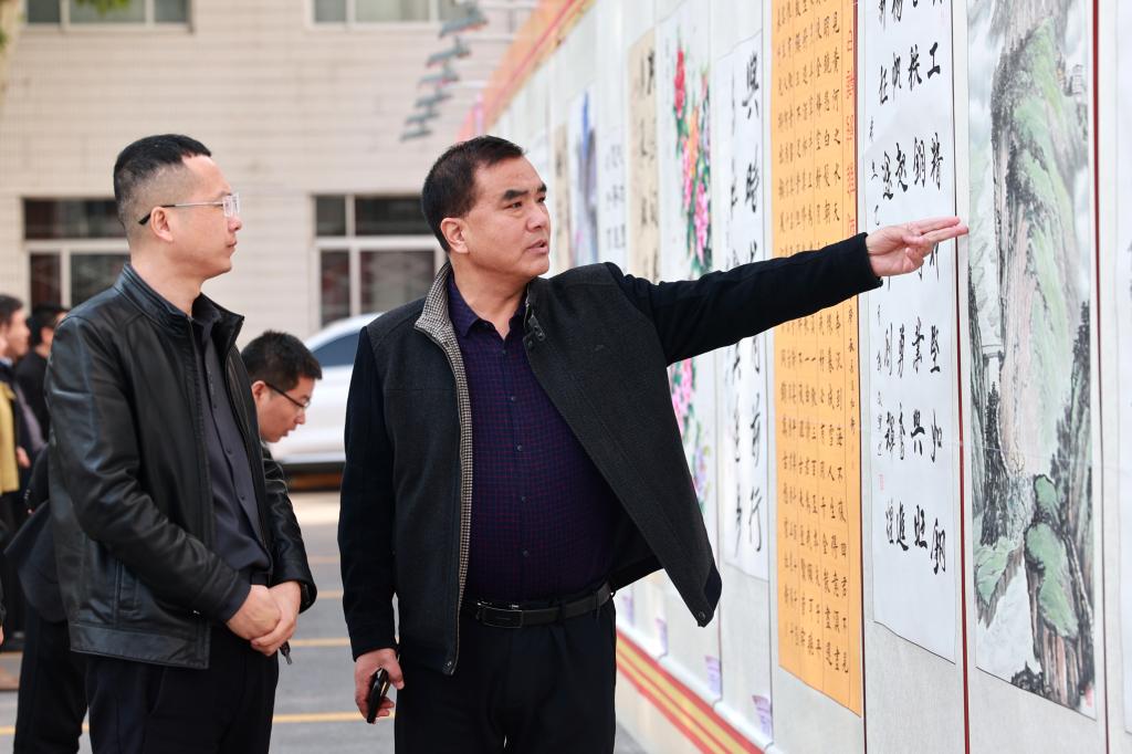 展覽中,一幅幅精美的書畫作品錯(cuò)落有致地懸掛在機(jī)關(guān)樓兩邊,吸引了眾多職工與藝術(shù)愛好者駐足欣賞。在書法作品區(qū),有的作品筆鋒剛勁有力,彰顯出企業(yè)勇往直前的磅礴氣勢(shì);有的作品則筆法飄逸靈動(dòng),以詩(shī)詞歌賦的形式抒發(fā)著職工對(duì)企業(yè)的熱愛與贊美之情。美術(shù)作品區(qū)同樣精彩紛呈,色彩斑斕的畫作,生動(dòng)描繪了現(xiàn)代化礦區(qū)的嶄新風(fēng)貌和礦工們的工作與生活場(chǎng)景,傳遞出一代代銅煤礦工特別能吃苦、特別能戰(zhàn)斗、特別能奉獻(xiàn)的“三特” 精神。