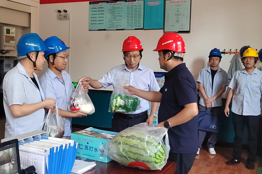 在嚴(yán)謹(jǐn)細(xì)致的檢查間隙,檢查組親切慰問了奮戰(zhàn)在一線的運(yùn)維和檢修人員,親手將清涼飲品、防暑藥品及解暑水果等慰問品送到職工手中,并反復(fù)叮囑大家務(wù)必注意勞逸結(jié)合,做好高溫防護(hù),確保自身安全健康。