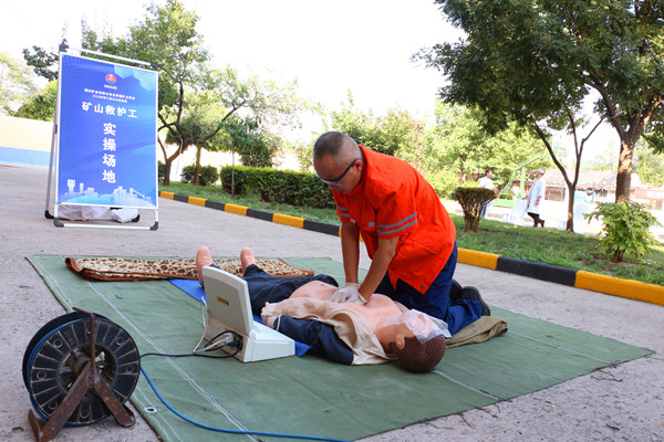 捋順管路、固定氧氣瓶、轉(zhuǎn)動(dòng)調(diào)節(jié)器……在礦山救護(hù)工競(jìng)賽現(xiàn)場(chǎng),每一次“滴、滴、滴”的計(jì)時(shí)聲音中,救護(hù)隊(duì)員與時(shí)間競(jìng)速,快速準(zhǔn)確完成氧氣呼吸器操作及故障處置,利用模擬人對(duì)救護(hù)工對(duì)CPR操作的關(guān)鍵要點(diǎn),包括按壓位置、深度、頻率的掌握情況進(jìn)行考核,整套動(dòng)動(dòng)完成拍下計(jì)時(shí)結(jié)束按鈕,扣人心弦,緊張激烈。