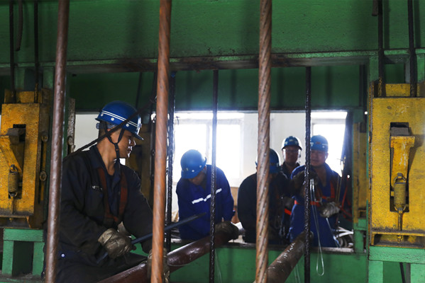 施工過程中,安全管理人員全程緊盯現(xiàn)場,作業(yè)區(qū)域拉設(shè)警戒線,井底施工人員在罐籠頂部安裝分繩器,罐籠平穩(wěn)停至指定位置后,搭建鋼梁穩(wěn)固支撐,并借助拉運(yùn)裝置,應(yīng)用快速提罐設(shè)備,緊密協(xié)同配合,大幅縮短提升時(shí)間。在平臺的施工人員精準(zhǔn)安裝自動鎖繩裝置,上下實(shí)施新、舊繩頭搭接、拆除舊懸掛裝置等操作。業(yè)務(wù)部門嚴(yán)格按照質(zhì)量標(biāo)準(zhǔn)要求,做到每道工序、每個環(huán)節(jié)驗(yàn)收,提供技術(shù)指導(dǎo),確保施工作業(yè)安全有序。