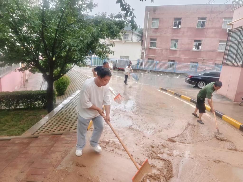 社區(qū)搶險隊員身著雨衣,手持鐵锨等工具化身“小區(qū)清道夫”逐一對受山洪沖刷影響的排水口、水井、樓前屋后排洪渠、低洼地帶進行“望聞問切”,用鐵鍬、鉤子等工具清掏淤積的落葉、淤泥,確保排水系統(tǒng)暢通無阻,在關(guān)鍵時刻彰顯了物業(yè)人“拉得出、頂?shù)蒙稀钡镁耧L貌。