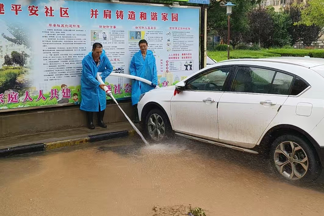 在清淤現場,物業(yè)工作人員分工明確、默契配合。他們手持掃帚、鐵鍬、高壓水槍等工具,對小區(qū)主干道、單元門口、地下車庫入口及休閑廣場等重點區(qū)域的淤泥、積水進行集中清理。面對黏附在地面的頑固淤泥,工作人員先用水槍沖刷軟化,再用掃帚反復清掃,最后將淤泥裝入垃圾袋統(tǒng)一清運,確保路面無明顯積水殘留。 經過數小時的連續(xù)奮戰(zhàn),小區(qū)路面淤泥和積水被徹底清理干凈,環(huán)境恢復整潔有序。