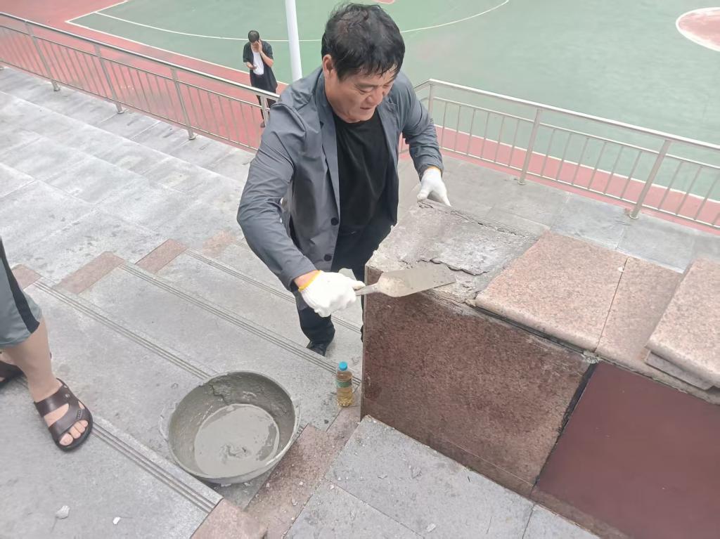 今年夏季,家屬區(qū)干部樓旁的室外樓梯加固修葺工程啟動(dòng)。為讓職工家屬早日踏上方便平坦的“放心樓梯”,劉小兵帶領(lǐng)團(tuán)隊(duì)頂著烈日拌砂漿,汗水順著臉頰滾落,很快便浸透了工裝?!奥萁z必須擰緊,不然后續(xù)容易松動(dòng),會(huì)留下不小的安全隱患?!彼冀K放心不下細(xì)節(jié),親手檢查每一處銜接,將每一顆松動(dòng)的螺絲都牢牢擰緊。