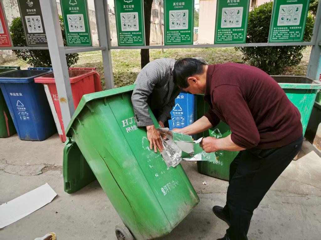 垃圾桶“煥新”:小修復(fù)省下大成本 該中心垃圾桶因長(zhǎng)期使用,部分出現(xiàn)裂縫、破損等問(wèn)題,若按常規(guī)換新,需投入不少費(fèi)用。管理中心職工主動(dòng)踐行“賺錢思維”,自發(fā)組成“修復(fù)小隊(duì)”。他們準(zhǔn)備好強(qiáng)黏合力防水膠帶、鐵絲等材料,對(duì)破損垃圾桶進(jìn)行“手術(shù)”,先用鐵絲對(duì)裂縫處打孔縫合加固,再用膠帶分別對(duì)垃圾桶內(nèi)外進(jìn)行粘補(bǔ),一番操作后,原本“傷痕累累”的垃圾桶又重新“上崗”。